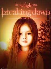 But there were a few things were just really weird. First of all, baby Renesmee did not look like a baby. You would think that one ultra-hot vampire and a supposedly attractive human would be able to produce a baby that did not look like a martian squirrel. I mean, I understand that she's a special baby and she grows quickly but that doesn't mean that she suddenly morphed into a chipmunk. Little kid Renesmee looks more like an actual child, maybe because the actress is an actual child, but she still has this mini-Barbie doll face that looks really weird on a little kid. And adult Renesmee is even worse; it looked like they took the picture of little kid Renesmee and just stretched it to make her look taller and it was like, "hi, I'm grown up Renesmee and I grew up to have sex with Taylor Lautner". Cool story bro.